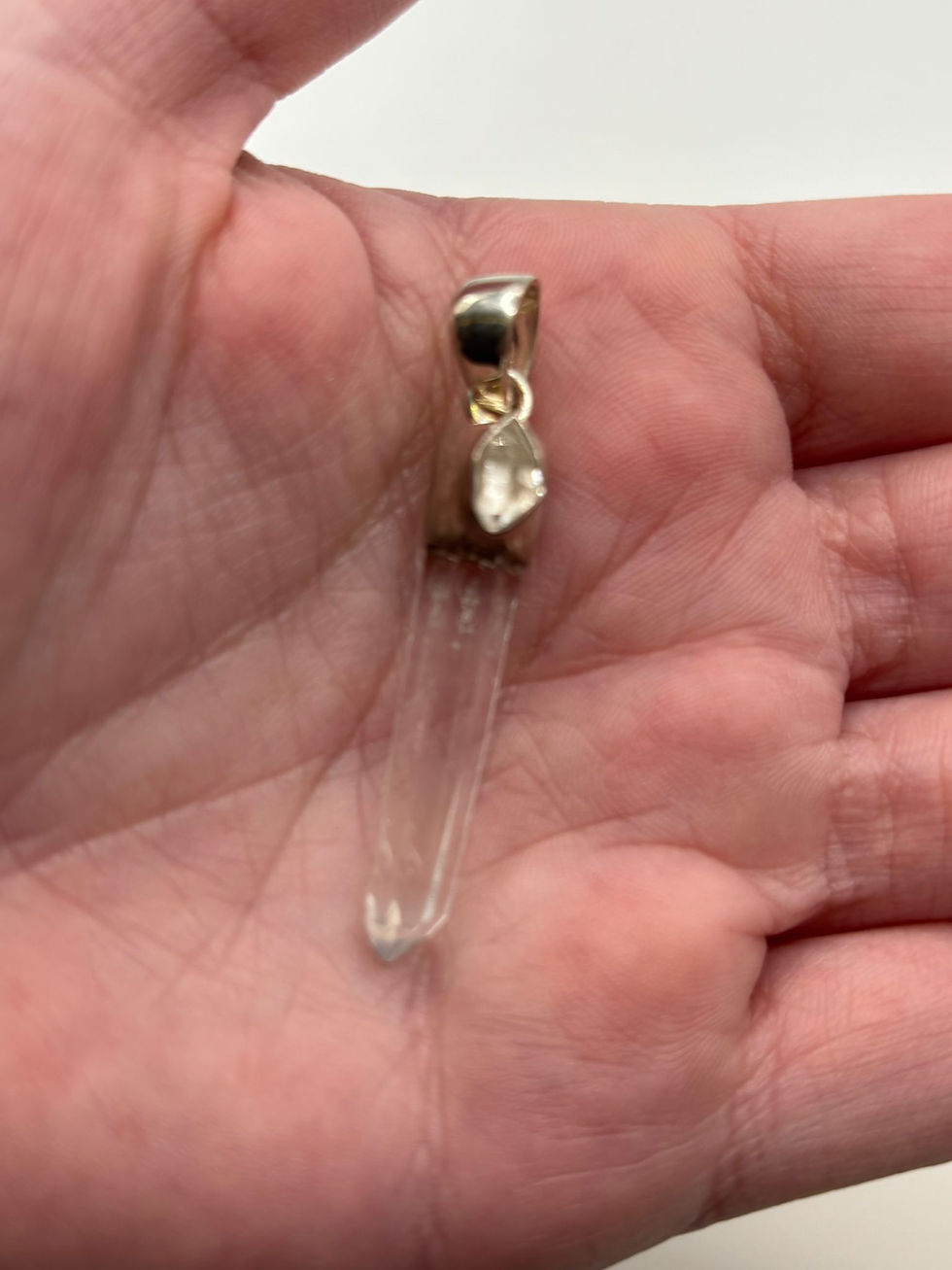 Lemurian and Herkimer Diamond Pendant - 925 Silver - BRAZIL