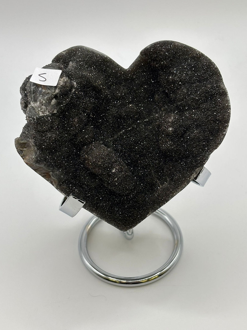 Uruguayan Drusy Black Amethyst Heart on Stand - No.3